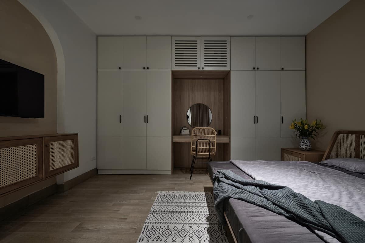 Chắc hẳn bất kỳ ai khi sở hữu ngôi nhà của mình đều mong muốn có góc nhỏ tĩnh lặng. Và chị Quỳnh cũng không phải là người ngoại lệ. Góc nhỏ được trang trí vô cùng tinh tế chính là nơi mà chị và chồng có thể ngồi đọc sách hoặc làm việc nếu muốn. Chiếc tủ nhiều ngăn có thể đựng được các đồ dùng nhỏ trong nhà. Bên trên tủ chị đặt khung ảnh kỷ niệm cùng với bức tranh nhỏ để tạo điểm nhấn. Điểm đặc biệt của góc nhỏ này chính là chiếc bàn được gắn sát tường. Nhờ đặt ngay góc với thiết kế không chân nên tiết kiệm được khá nhiều diện tích trống. Đây là nơi mà gia chủ rất yêu thích mỗi khi có thời gian rảnh rỗi.